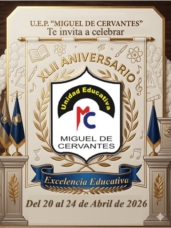 Dando cabida a los nuevos paradigmas de educación tecnológica empleada como coadyuvante de la labor del crecimiento estudiantil. La U.E.P. “MIGUEL DE CERVANTES” es una escuela inclusiva que a través de la transdisciplinariedad de saberes pretende educar para la vida, formando ciudadanos responsables, creativos, innovadores y empáticos, que sean personas dignas y ejemplares para la sociedad.